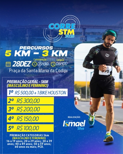 PREMIAÇÃO CATEGORIAS - 1º AO 3º PARA TODAS AS CATEGORIAS (MASCULINO E FEMININO PARA 5KM)